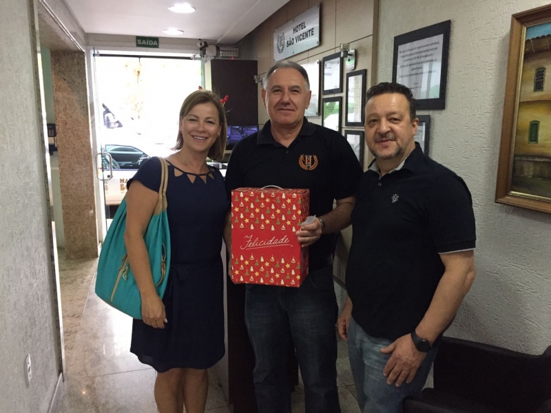 Na foto, nosso recepcionista mais que carismático, Sr. Mário e dois dos sócios proprietários, Sra Eveli Balen e Sr. Evandro Balen.